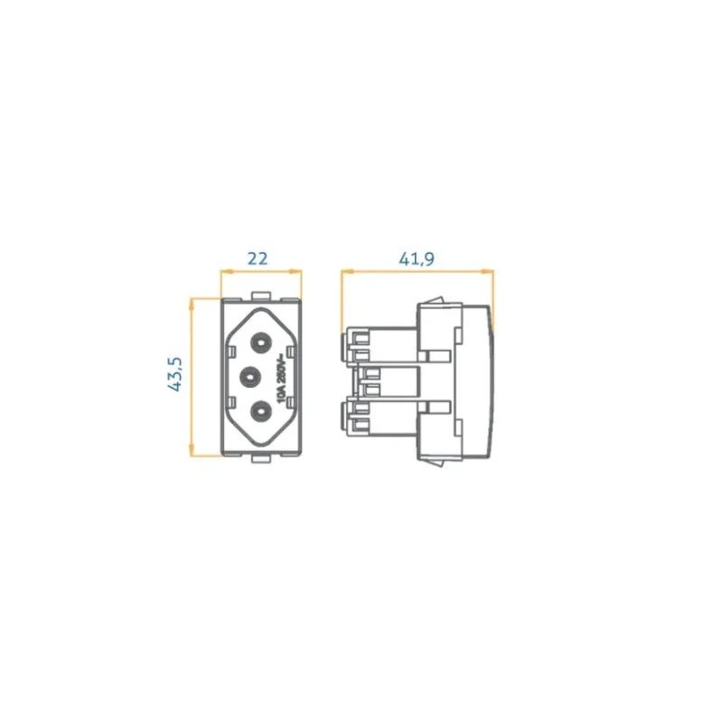Tomada para embutir em madeira, MDF, MDP ou derivados. Utilizada principalmente na marcenaria, ideais para peças planejadas como armários, cabeceiras, painéis, bancadas, balcões de cozinha, mesas para escritório, entre outras